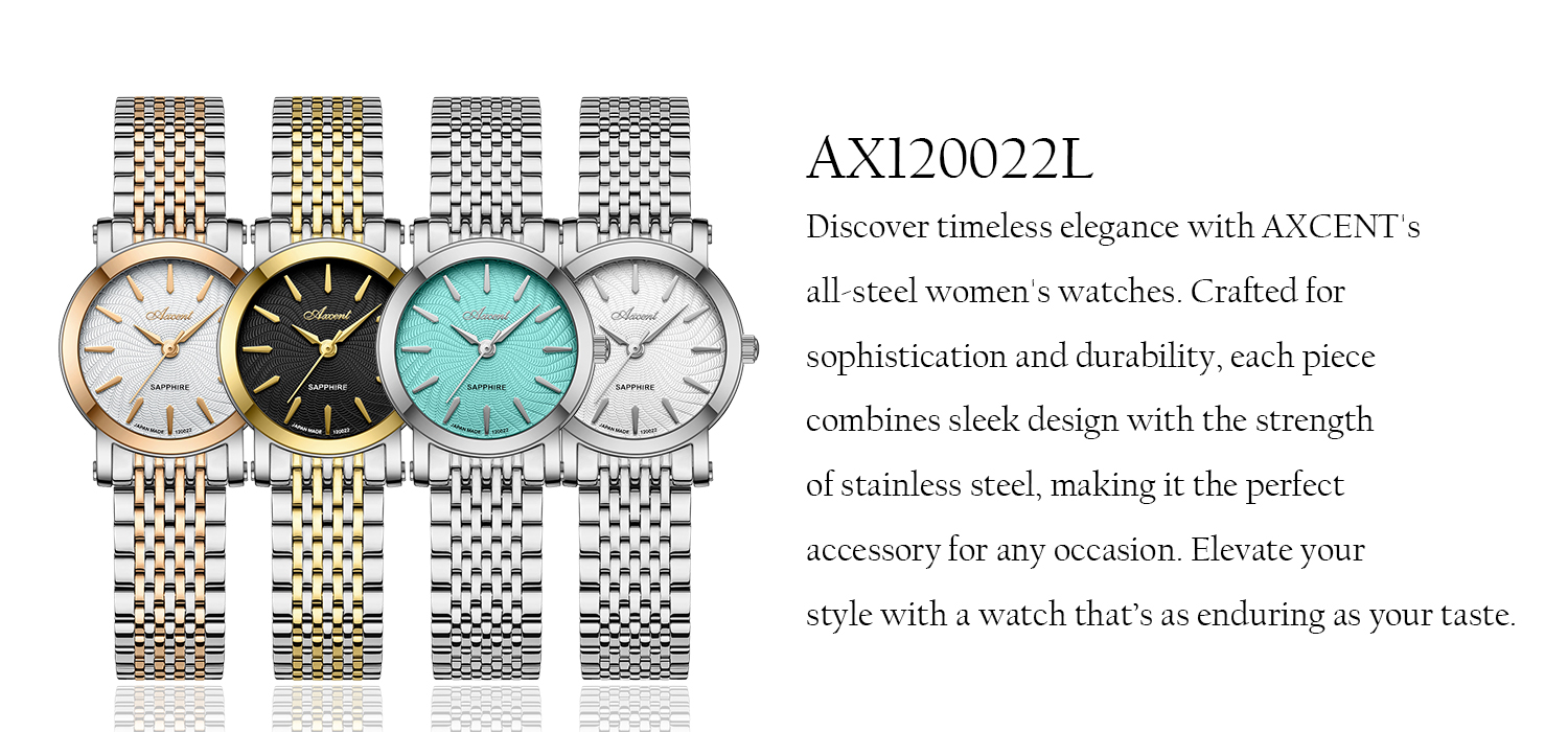 New collection of Axcent women’s wristwatches, model AX160038L. All-steel construction and calendar. Various colors and beautiful and pleasant structure and design. A constant companion and more than just an accessory for women. The special design of this watch model is suitable for special women.
